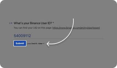 5. Kopieren Sie Ihre Binance User ID und fügen Sie diese in die Form ein. Klicken Sie anschließend auf "Submit".