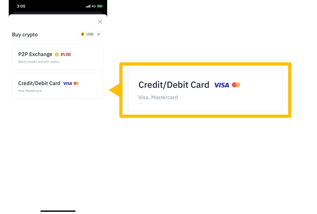 3. Klicken Sie auf [USD], um die Liste der unterstützten Fiat-Währungen zu öffnen.
