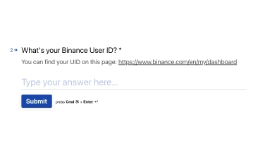5. Copie su ID de Binance y péguelo en el formulario, luego presione el botón [Enviar].